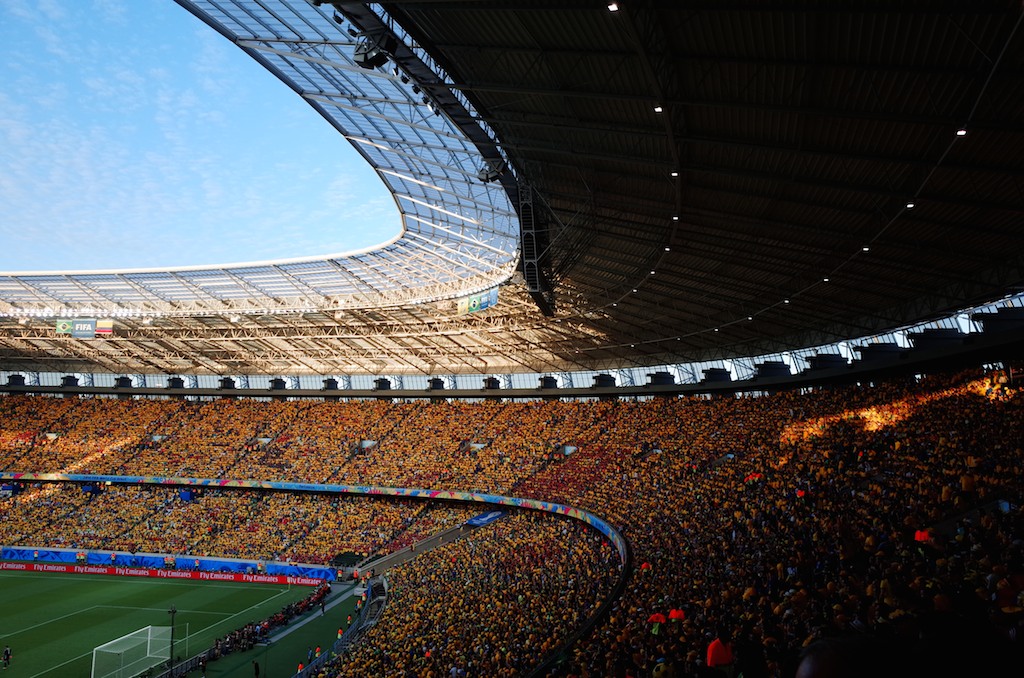 2つ目はゴールの瞬間。ネーイマールのコーナーキックをキャプテンのチアゴ・シウバがあわせ先制ゴールを決めた時、ダビド・ルイスの無回転FKがゴールネットを揺らした時、スタジアムは文字通り震撼した。腹の底から絶叫し、拳を突き上げるもの、踊り跳ね狂うもの、抱きしめ合うもの。これ以上の喜びの表現はないというほどゴールを祝う。