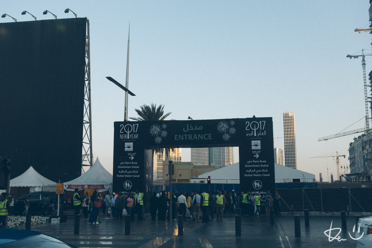 以前は無料だった噴水エリアは、事前に有料観覧席のチケットの手配が必要。当日は夕方ぐらいからドバイモールや周辺の観覧特設会場へ入場規制がはじまる。イラスラム圏らしく男ソロと男グループは、女子供連れグループと隔離される。バリケードの向こうは飢えた狼かピラニアの群れ。隅田川の花火やNYのカウントダウンと比べて移動を除き鑑賞環境はだいぶ快適。帰宅路は地下鉄ドバイモール駅は封鎖され、シャトルバスまで徒歩の渋滞、バスで地下鉄下鉄の駅まで車の渋滞、そこからタクシー争奪戦。