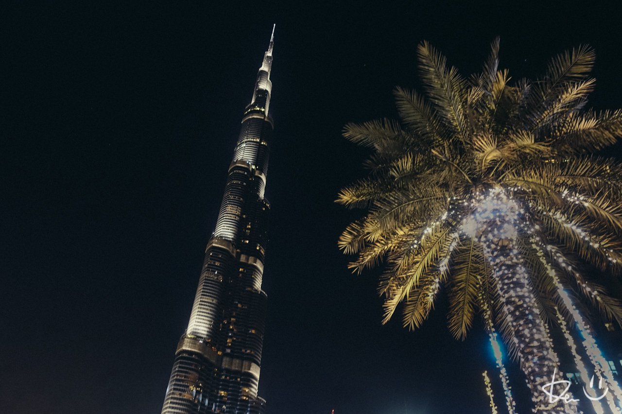 地上からブルジュ・ハリファを見上げ余韻に浸る。今年も残り1日と映し出されている。明日は、ここからニューイヤーズイブ・カウントダウンの花火が打ち上げられる。
