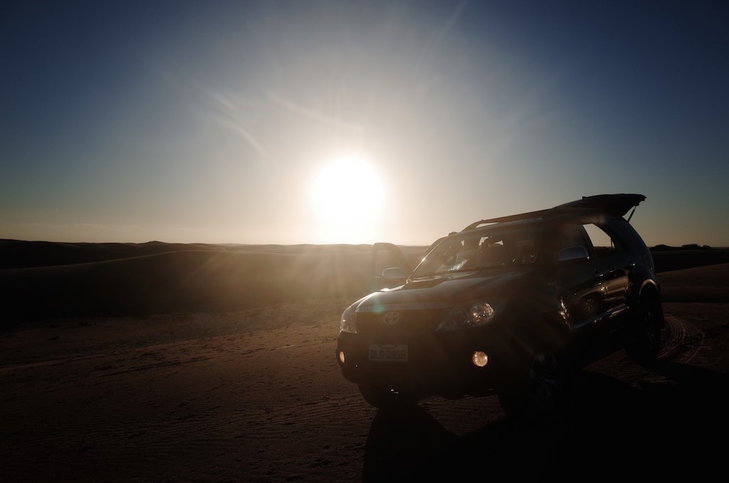 午前4時30分に起きてパヘリーニャスからジェリコアコアラまで次々に変わる道を四駆で突っ走る。パルナイバへ向かうアスファルトの道までしばらくダートの道が続く。真っ白の砂漠を過ぎると、茶色い泥が跳ね、赤い土の道なき道を走る。緑の生い茂る湿原を駆け抜け、水たまりも川もおかまいなし。生命の誕生を示唆するかのように太陽が昇り、漆黒の夜から紫、橙、青空へと神秘的なグラデーションを描く。誰もいない荒野かと思えば、野生の動物たちの群れに遭遇する。何百年、もしかしたら何千年前の人も同じ風景を見たのだろうか。