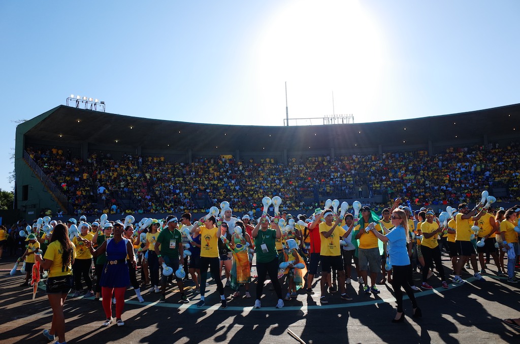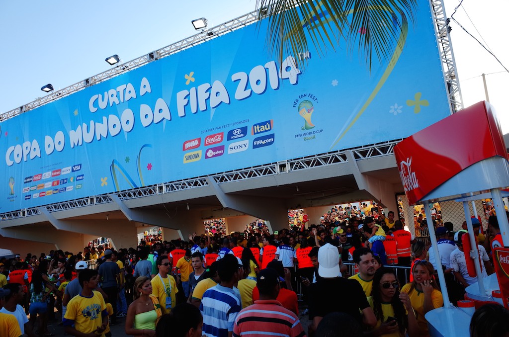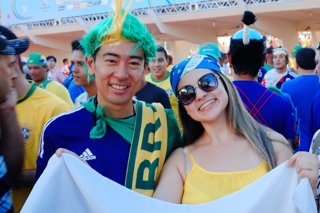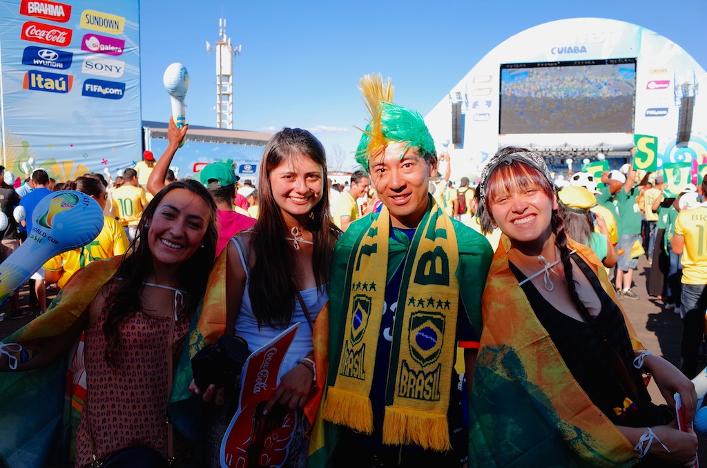 東海岸のナタールから舞台は内陸のクイアバへ。明日はグループリーグ最終節日本vsコロンビア戦。決戦前日はブラジル対カメルーンをファンフェスタでパブリックビューイング。ホストファミリーや友達にもらったマフラー、ウィッグ、フラッグをまとえば気分はブラジリアン。地元のメディアにも出演。レシフェの数倍広いファンフェスタが入場制限されるほどブラジルサポーターで埋め尽くされる。ゴールが入ったときの歓声は圧巻。