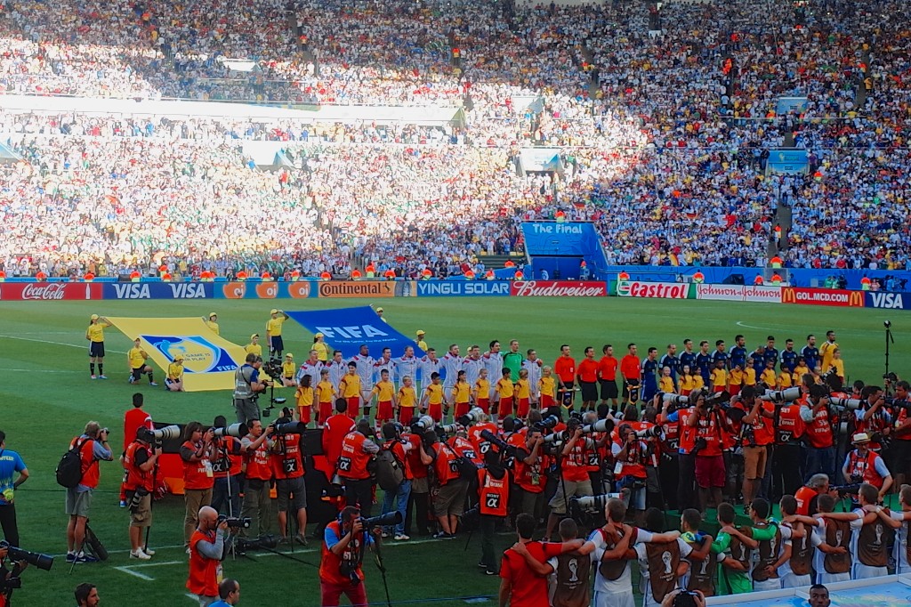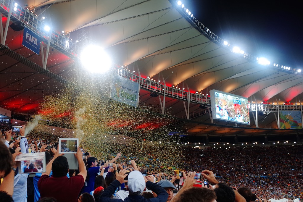 決勝に相応しい緊張感ある闘い。90分走り抜いてもスコアレスドロー。延長戦突入。試合終了直前にゲッツェが劇的なゴールを決める。その瞬間マラカナンスタジアムは歓喜の渦に包まれる。ドイツはメッシにマラドーナの再現を許さなかった。アルゼンチンの捨て身の猛攻も守護神ノイアーのゴールをわることはできず試合終了のホイッスル。その笛は4年に1度世界が最も熱くなるパーティーの終わりを告げる笛。
