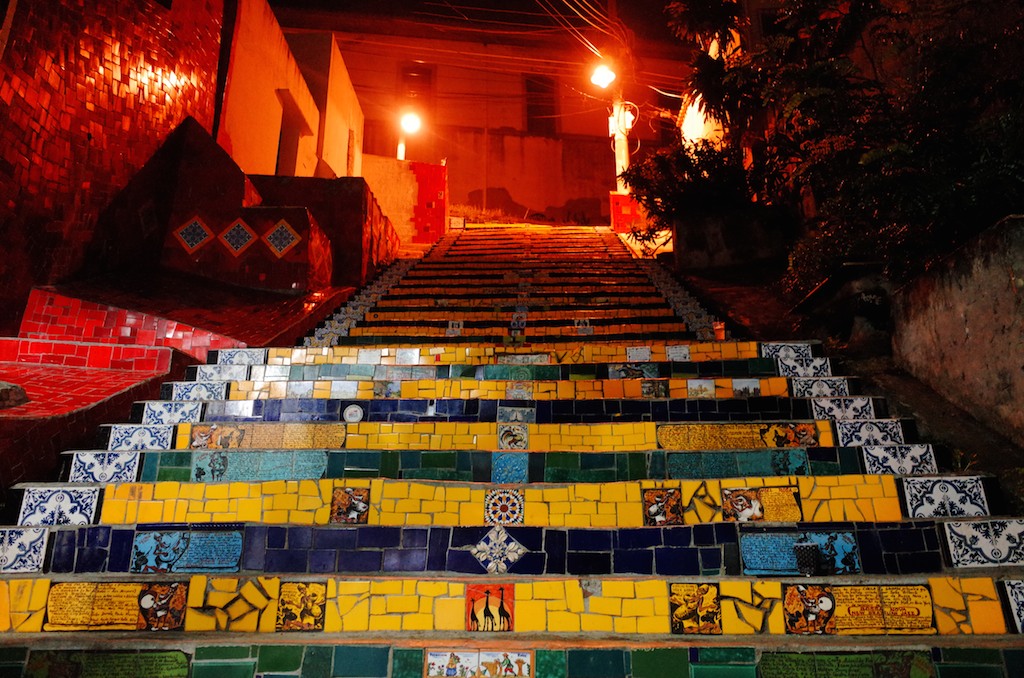 再びリオ、そしてラパへ。チリ人アーティストホルヘ・セラロンが手がけたリオエジャネイロ旧市街ラパ区にある階段アート、Escadaria do Selaron(エルカダリア・ド・セラロン)。世界各国のタイルに出逢える。週末はカリオカや旅人が朝まで飲み明かす。