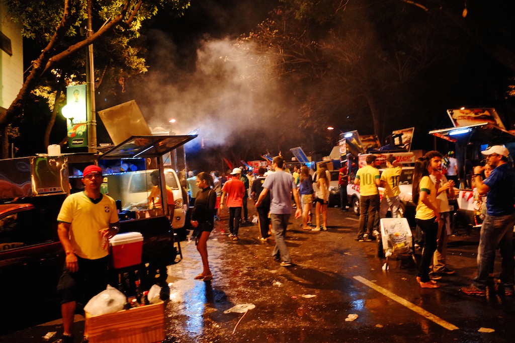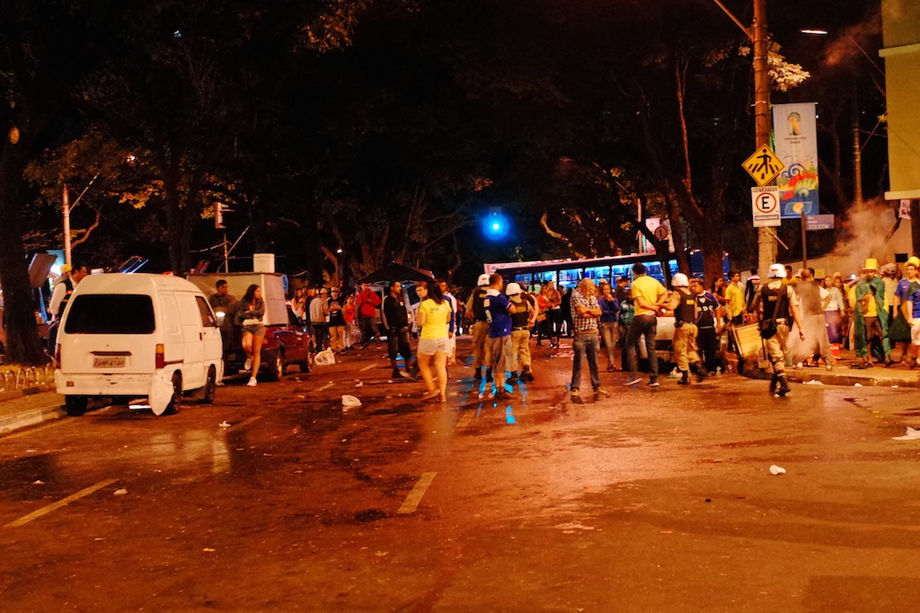 日頃の鬱憤を当たり散らすように騒ぐ輩はいつでもどこにでもいる。今夜は特にブラジリアン同士の喧嘩が多くそれを制止する警官隊は忙しそう。小競り合いは普段から荒れた国ではよくあることで自分が見た範囲では特別な様子はなかった。特別というのは、車がひっくり返えり、炎があがり、ショーウィンドウが割られたようなスタンレーカップの時にバンクーバーで経験したような暴動をさしている。