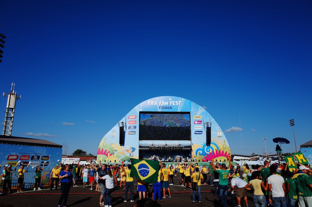 デイゲームの今日は空の青とスタジアムの白と芝生の緑が映える。コロンビアとブラジルのサポーターの黄色のユニフォームの染まったスタンド。ラテンの勢いにも圧倒されこの大会はじめてのアウェイの雰囲気を味わう。
