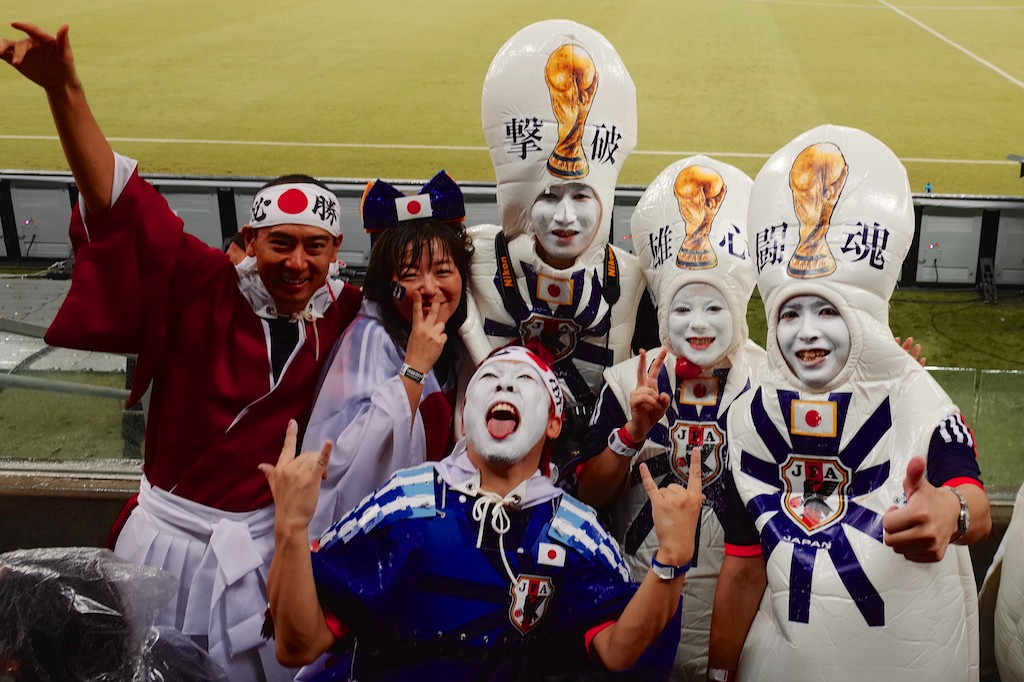 朝から高鳴りっぱなしの気持ちはスタジアムに近づくに連れて最高潮に達する。日本を発ってから目にしてなかった少し懐かしいサムライブルーのユニフォームやコスチュームの日本人サポーターの姿にワールドカップモードに切り替わる。日本より海外で会う回数の方が多いサポーター仲間と合流し久しぶりに対面で日本語を話しホームのような雰囲気で過ごす。メディアの写真撮影や取材の対応はほどほどに、試合開始前までハチマキを配ったりブラジル人や他国のサポーターとの交流をしばし楽しむ。そして、運命のキックオフ。