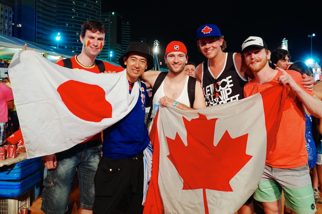 日本人旅行者が外国で日本人と会うと同郷のよしみを感じるようにトロントニアンやバンクーバーライトと会うと親近感が湧く。日本人のように顔の特徴でカナディアンと言い当てることは難しいが、彼らの服装や持ち物を見たり英語を聞けばカナディアンと分かることは多い。カナダデイの今日はファンフェスタでメイプルのフラッグを誇らしげに掲げるカナディアンがいた。「Happy Canada Day!」と声をかけるとカナダを愛する仲間が広がる。
